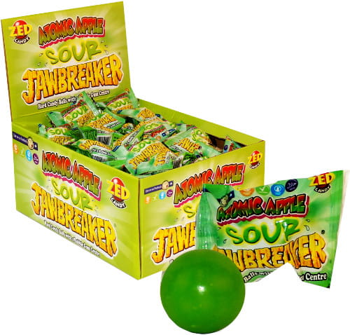 Łamiszczęka o smaku kwaśnego jabłka. Super twarde cukierki, najpierw do ssania, potem do żucia. Każdy cukierek pakowany w osobny papierek.