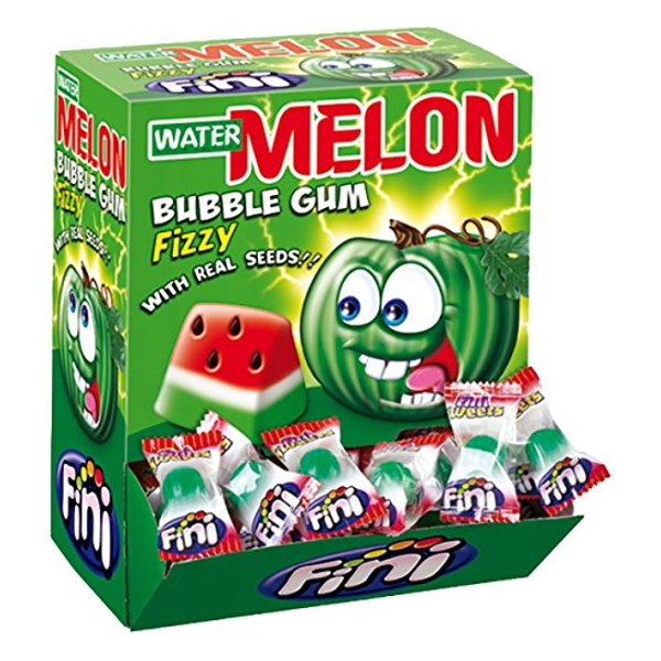 Guma balonowa Fini Watermelon o smaku arbuzowym 200 sztuk. Gumy w kształcie arbuzów. Każda guma w osobnym papierku.