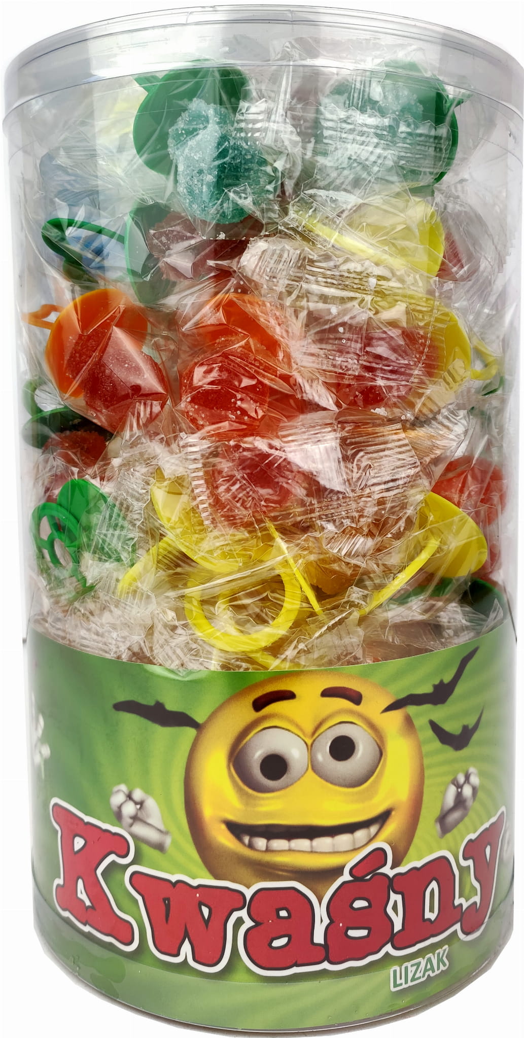 Składniki: cukier, syrop glukozowy, aromaty, barwnik: E124, E133, E104; kwasek cytrynowy. Nie odpowiednie dla dzieci do lat 3.