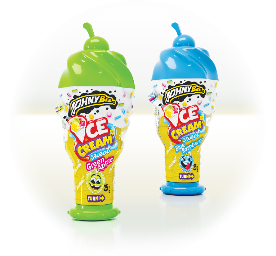 Ice Cream Squeeze Gel - Słodki lizak żelowy o smaku owocowym w zabawnym opakowaniu w kształcie loda w rożku.
