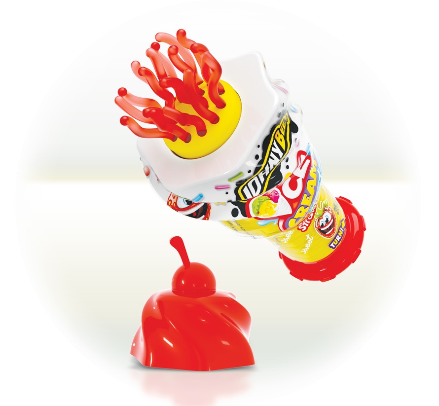 Składniki: syrop glukozowo-fruktozowy, dekstroza, maltodekstryna, modyfikowana skrobia spożywcza, woda, regulatory kwasowości: kwas cytrynowy, kwas jabłkowy; aromaty, substancja konserwująca: sorbinian potasu; barwnik: koszenila, błękit brylantowy FCF, kurkumina.