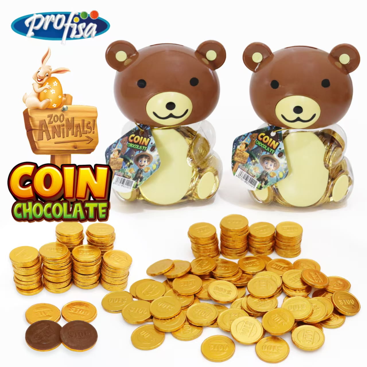 BEAR Chocolate Coin Monety Czekoladowe Miś Skarbonka 100szt x 2,4g