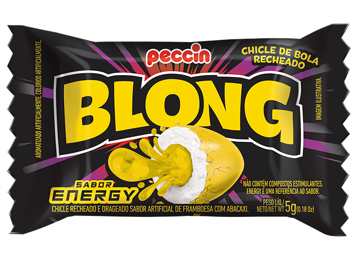 Guma do żucia z chrupiącą otoczką i nadzieniem o smaku energetycznym (malina i cytryna).