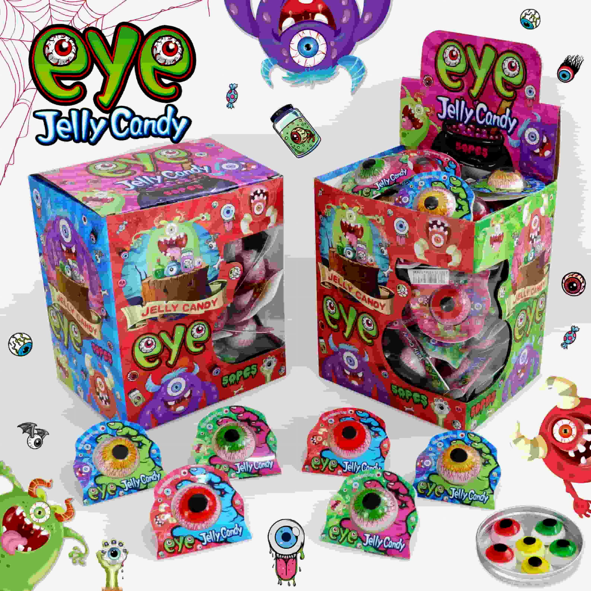Eye Jelly Candy - Okrągłe żelki kształtem przypominające kolorowe gałki oczne.