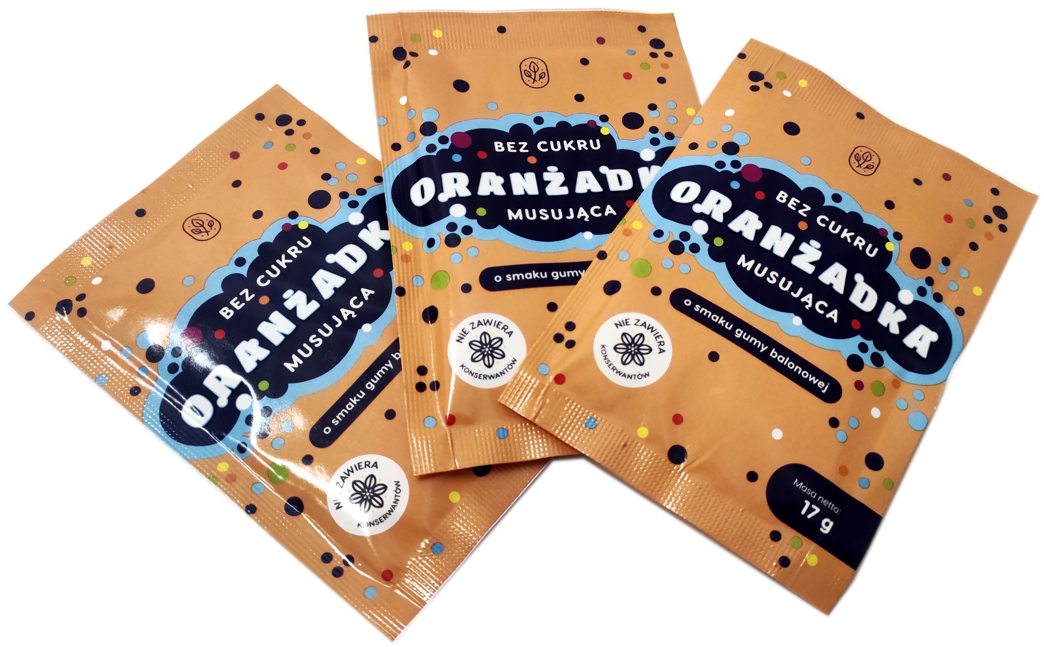 Oranżadka sprawdza się doskonale do przyrządzenia orzeźwiającego musującego napoju lub do zjedzenie prosto z saszetki.