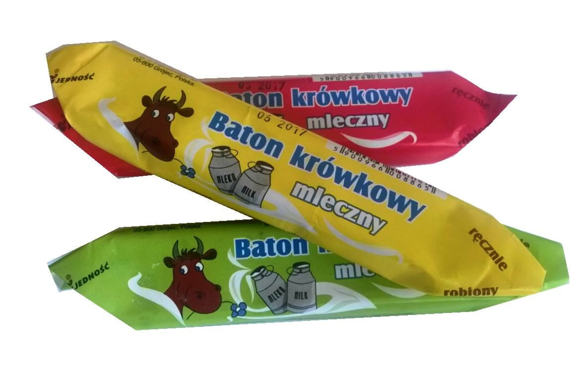"Baton Krówkowy" Na zewnątrz kruchy, w środku delikatne ciągnące się nadzienie, które rozpływa się w ustach. Wyjątkowa propozycja, którą każdy miłośnik krówek powinien spróbować. Mleczny delikatny smak w połączeniu z tradycyjną recepturą i surowcami najlepszej jakości pozwoli Ci przenieść się w beztroskie czasy dzieciństwa..