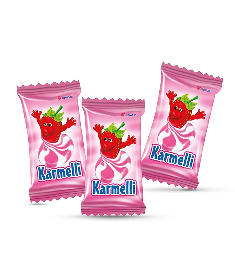 Karmelli to twarde karmelki o smaku śmietankowo-truskawkowym.