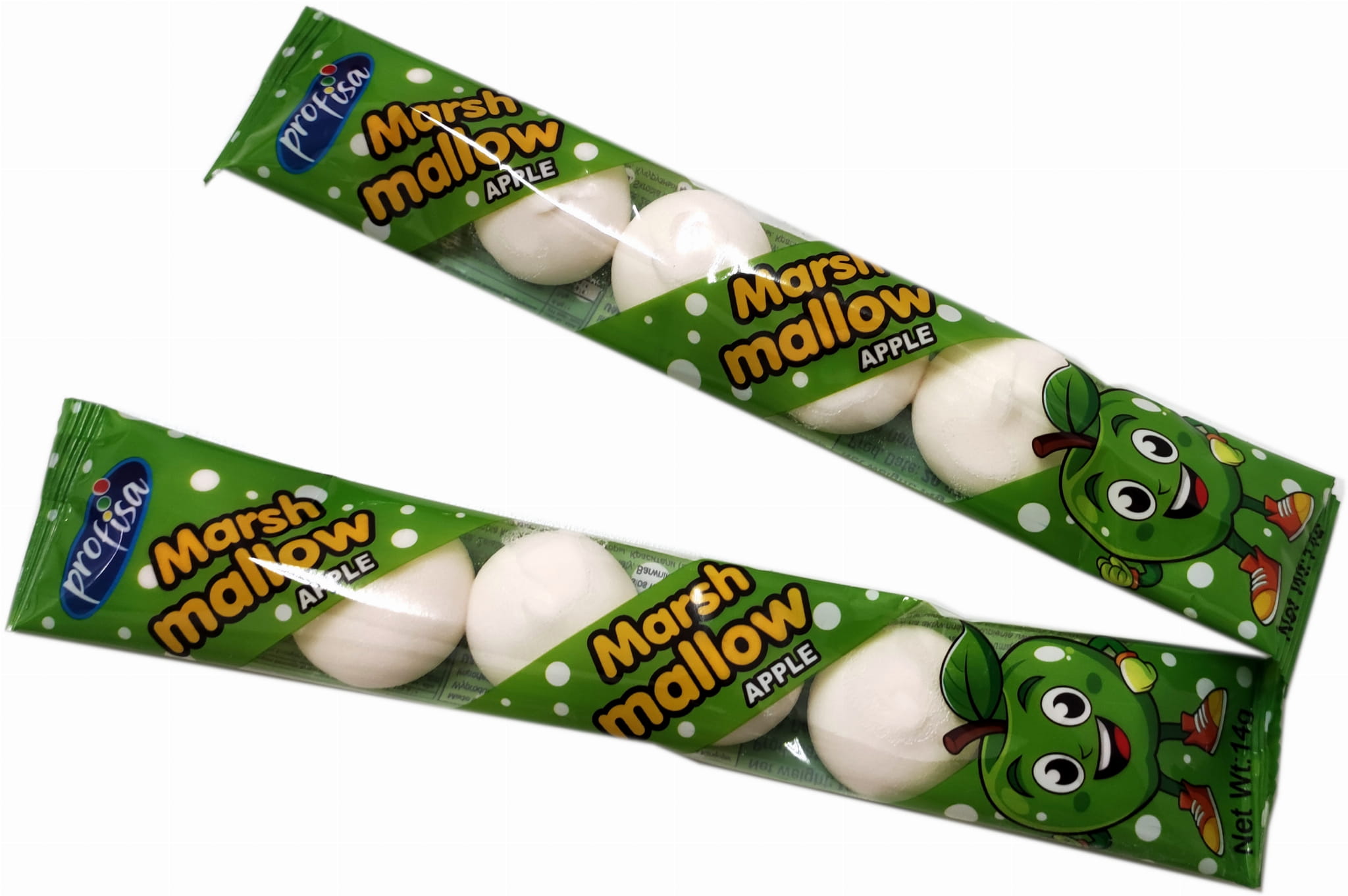 Smaczne pianki o smaku jabłkowym z płynnym nadzieniem w środku.