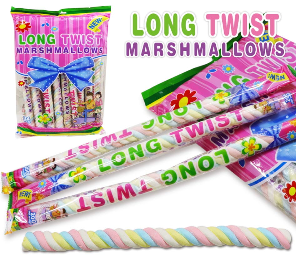 Pianki Owocowe XL Long Twist Marshmallow 24 szt