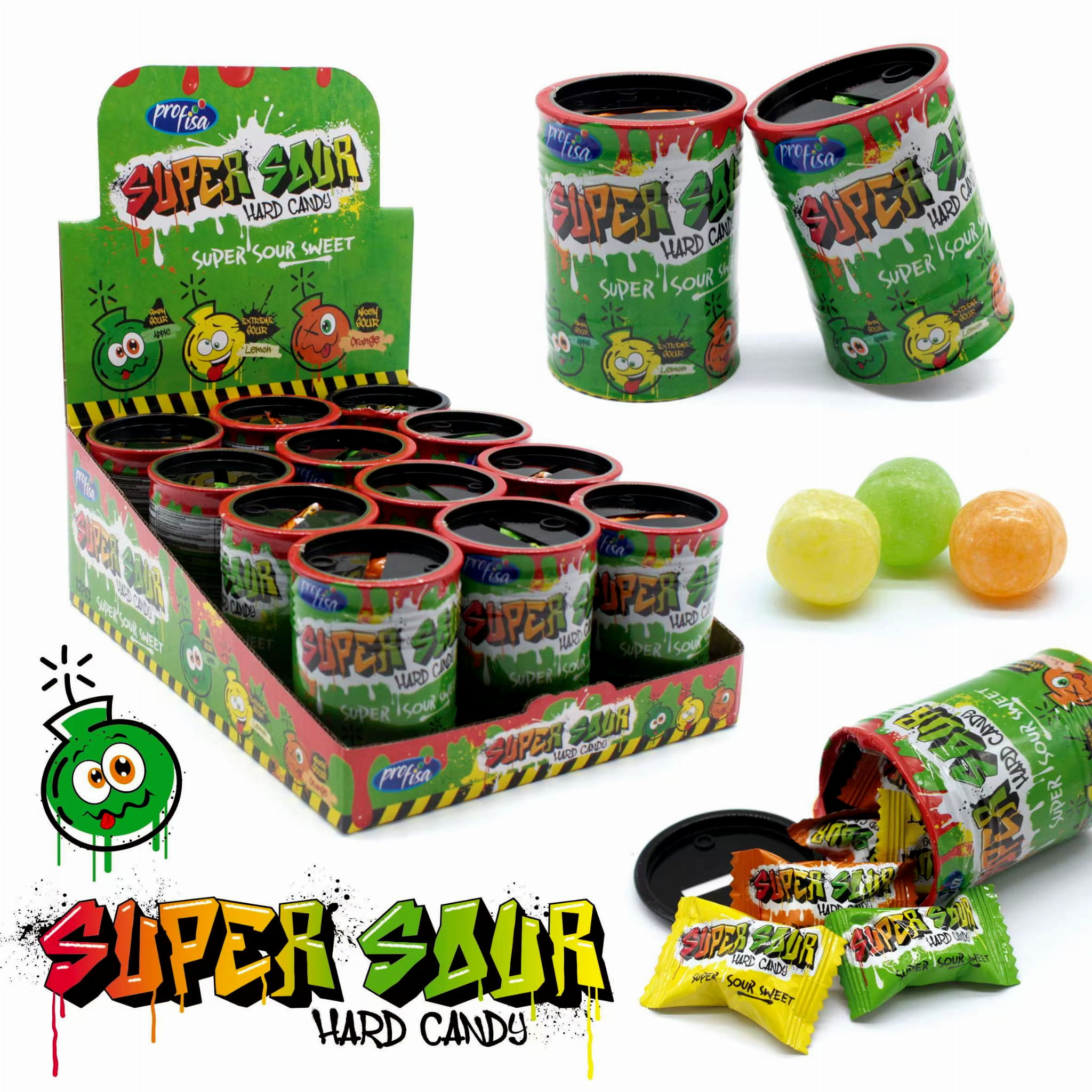 Super Sour Hard Candy Kwaśne Cukierki w Beczkach 12szt x 40g