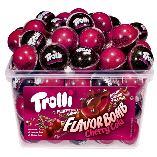 Trolli FLAVOR BOMB CHERRY COLA Nadziewane Żelki Bomby WIŚNIA COLA 60szt