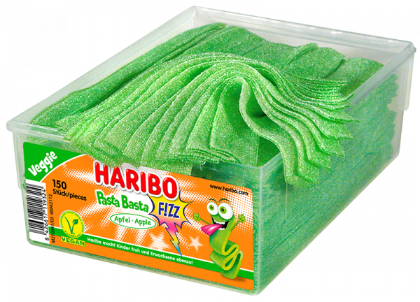 Żelki paski Haribo 150 szt o smaku jabłkowym.