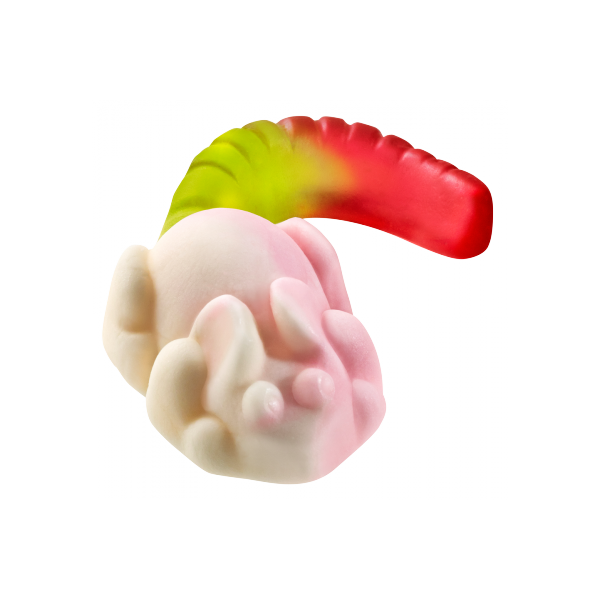 Składniki: Syrop glukozowy; cukier; żelatyna spożywcza; kwasy: kwas cytrynowy, kwas mlekowy, środki spożywcze o właściwościach barwiących (czarna porzeczka, czarna marchew, słodki ziemniak, czerwona rzodkiew, czerwone winogrono, wiśnia, jabłko, kurkuma, krokosz barwierski, cytryna, spirulina); substancja żelująca: pektyna; aromaty; olej z nasion palmowych; substancje glazurujące: wosk pszczeli (biały i żółty), wosk carnauba.